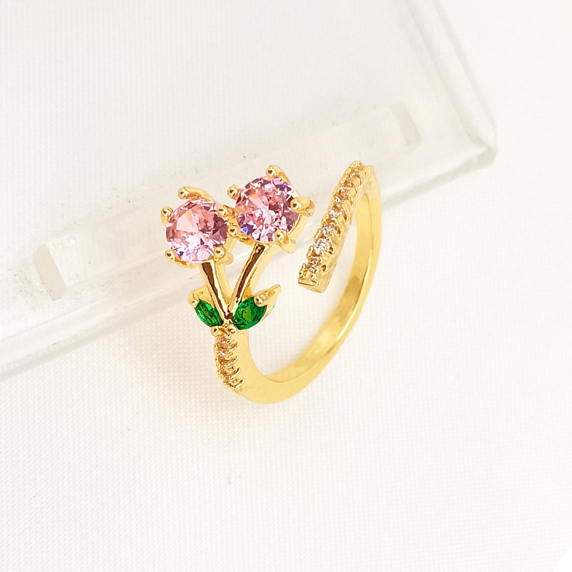Color: Micro inlaid leaves split ring, pink micro inlaid split ring
