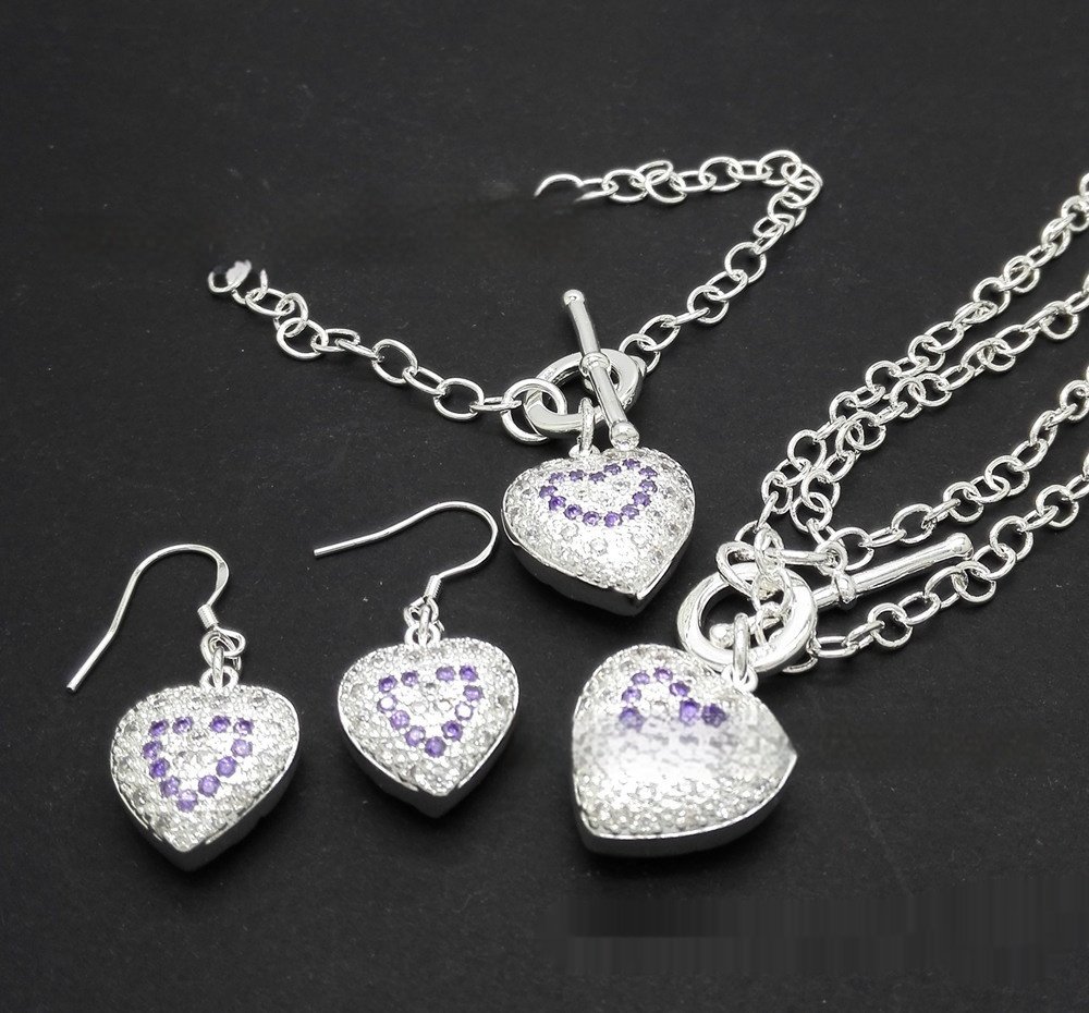 Amethyst Heart Necklace Bracelet Earrings Three-piece Suit
