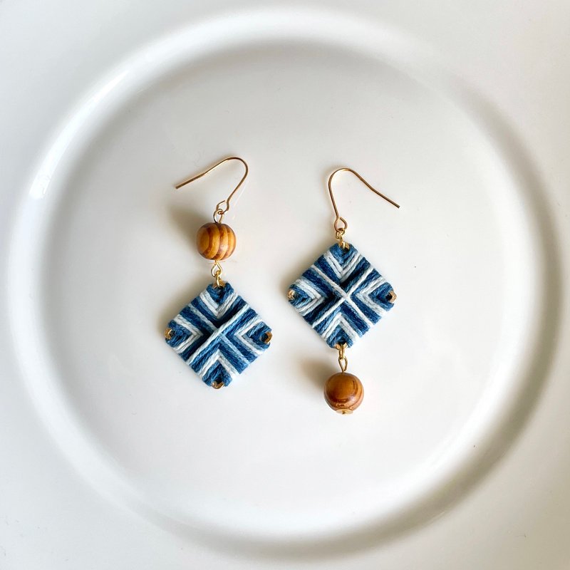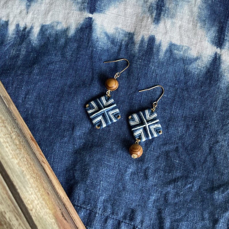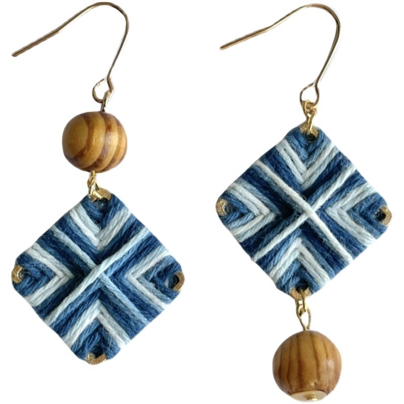 Material: Natural wood beads 1 plant dyed blue dyed thread (handmade each will be slightly different)