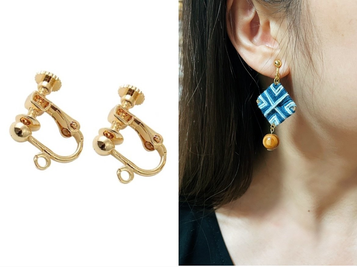 Ear hook 1 ear clip: 14k gold-plated ear hook / k gold-plated spiral adjustment ear clip