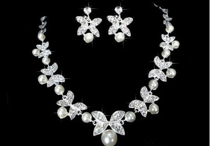 Butterfly bridal jewelry set chain pearl jewelry three piece bridal soft chain headdress Bridal Jewelry Set
