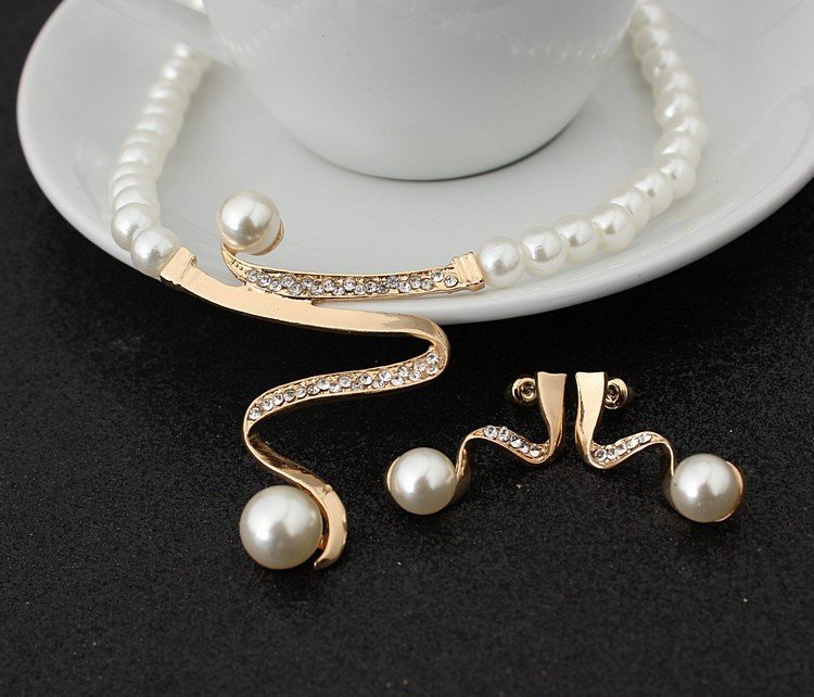 European fashion diamond crystal pearl necklace earrings set bride wedding accessories wholesale CMT058