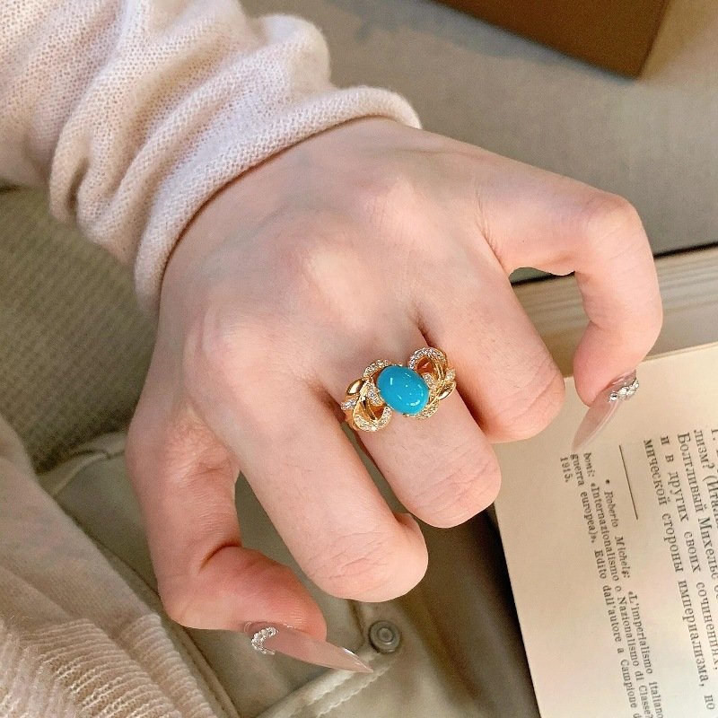 Color: wave hollow turquoise ring