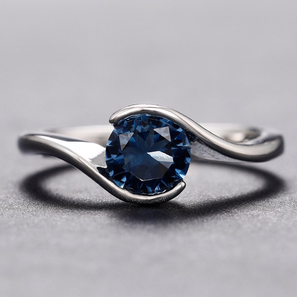 Fashion Twisted Arm Blue Round Diamond Zircon Topaz Simple Women’s Ring