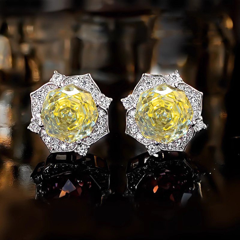 Flower Ring Elegant Graceful High Carbon Diamond Goose Yellow Stud Earrings
