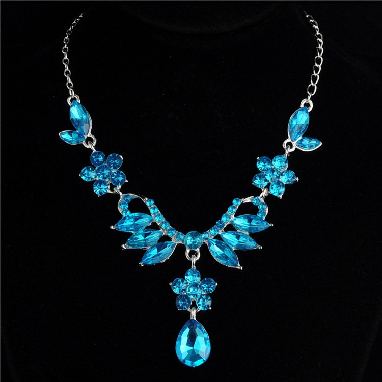 Foreign trade explosion bride alloy diamond necklace earrings set wedding jewelry and jewelry accessories
