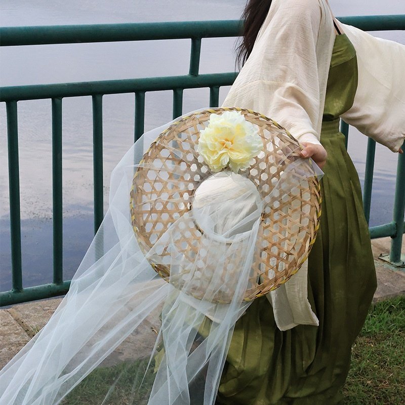 Hanfu Hat Bamboo Hat Tassel Crystal Curtain Chivalrous Woman Bamboo Hat Veil