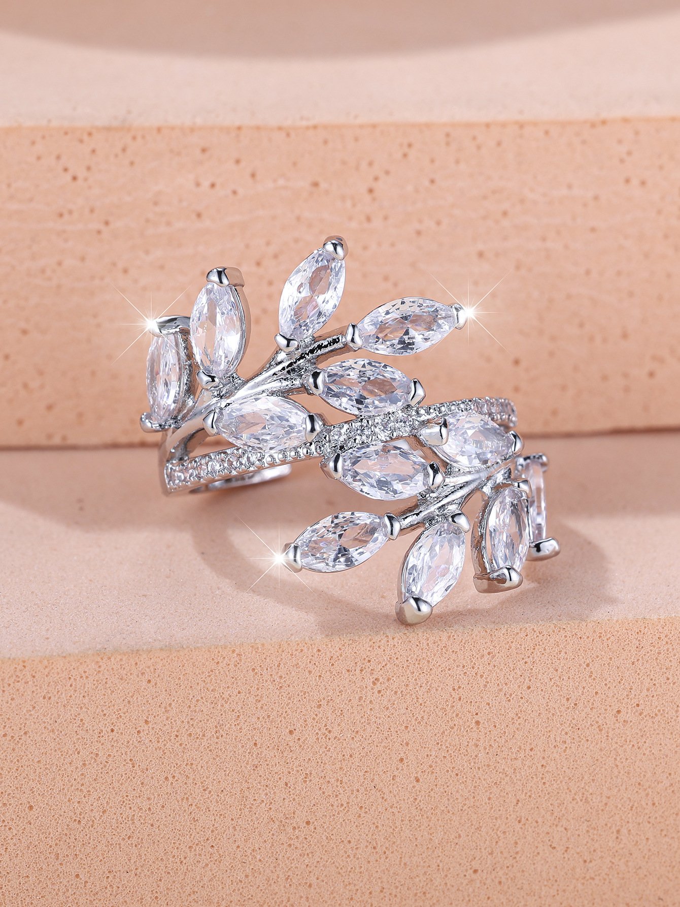 Embossed Feather Ring Female Fashion Exquisite Ring Inlaid Yellow Zircon Style