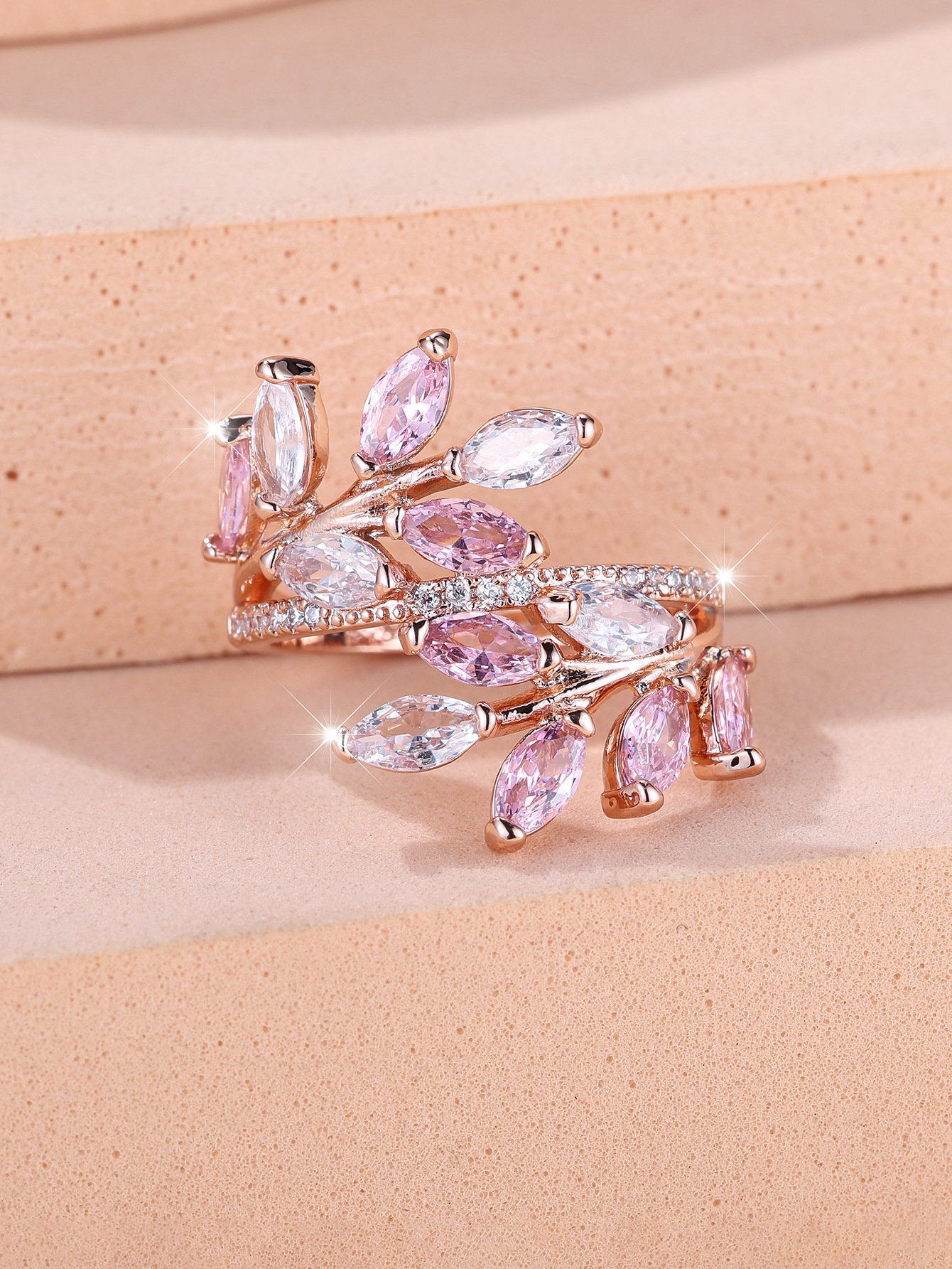 Pastoral Style Enamel Flower Branch Ring Opening Adjustable