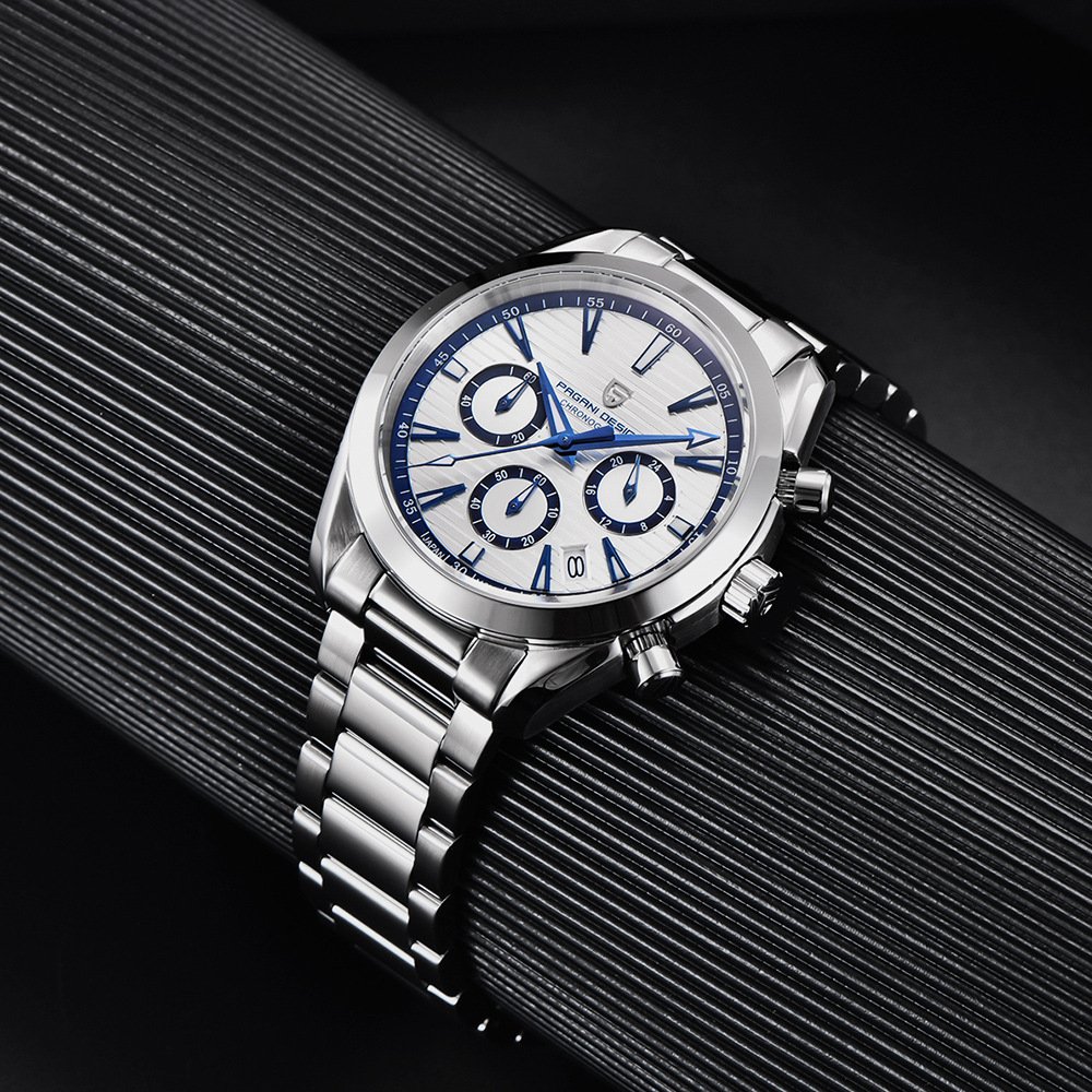 $616.96Select options This product has multiple variants. The options may be chosen on the product pageSpecial function: chronograph, 24-hour indication Display type: pointer Applicable people: male Style: Sports Waterproof: Yes Waterproof performance: 30M Movement type: quartz Movement brand: imported quartz movement Thickness: 11mm Dial diameter: 42mm Crown type: onion crown Table bottom type: ordinary Mirror material: sapphire crystal glass mirror Clasp style: pin buckle Buckle material: stainless steel Strap material: first layer cowhide Dial shape: round Case material: stainless steel