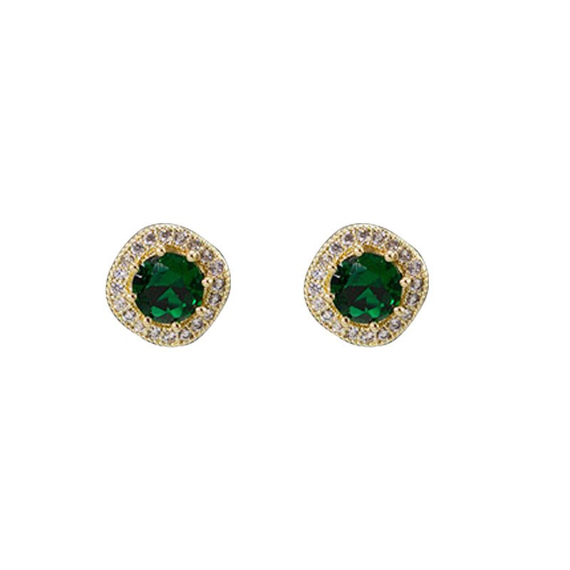 Color: green square diamond stud earrings (copper plated gold)