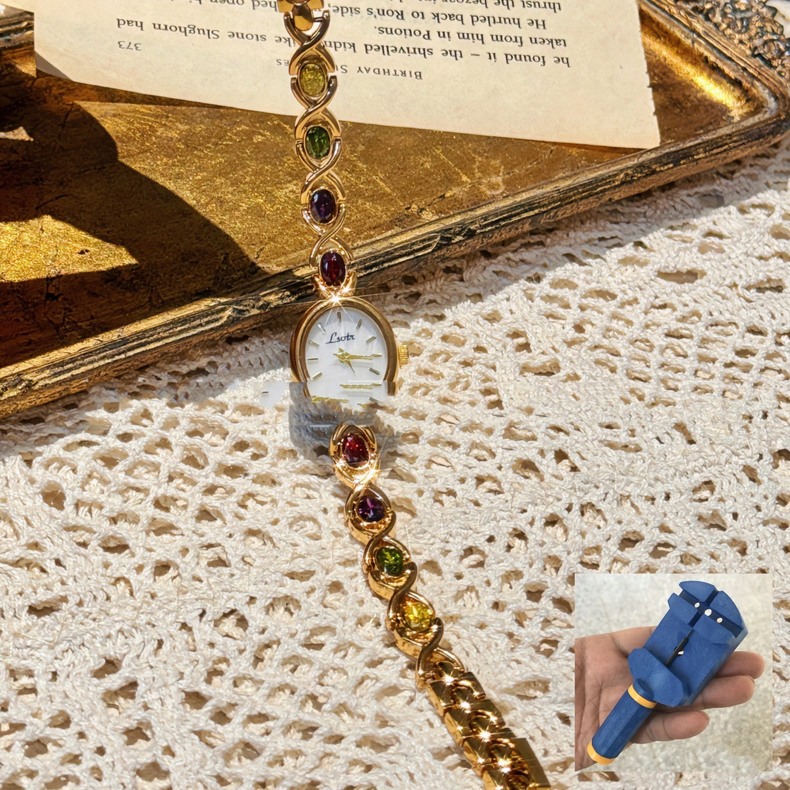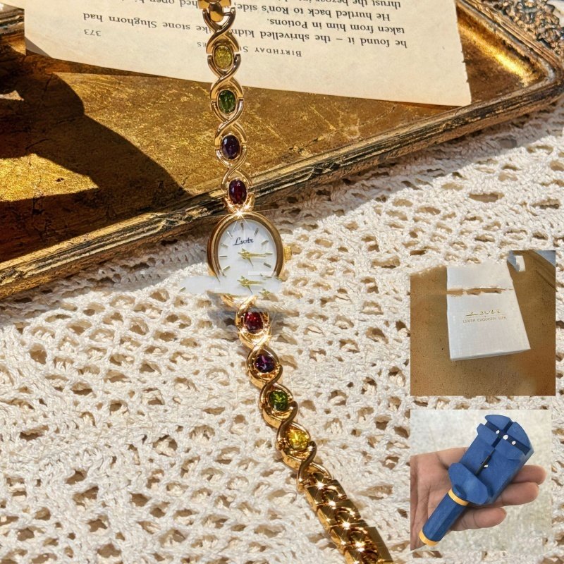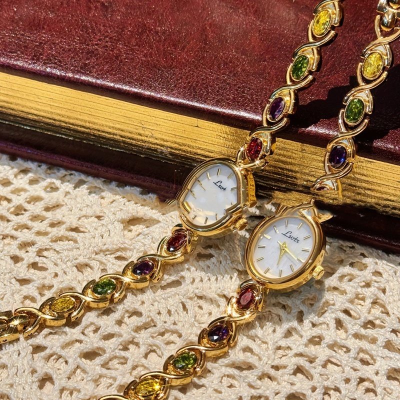 New Mid-ancient Fashion Oval Colored Gems Rainbow Women’s Watch