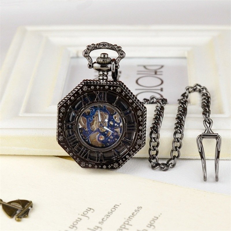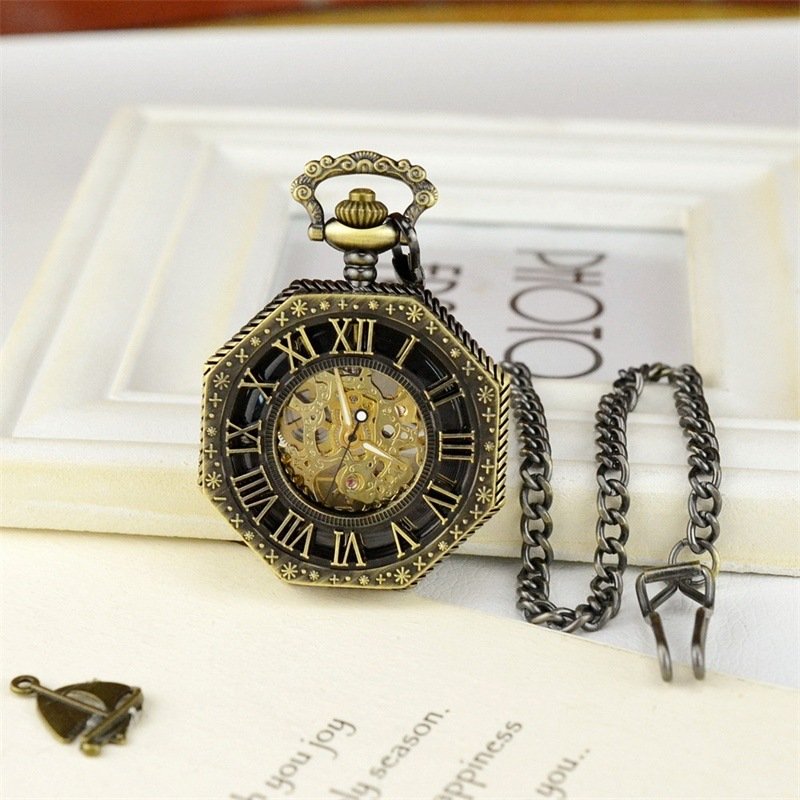 Openwork pocket watch carved octagonal mechanical pocket watch vintage Roman
