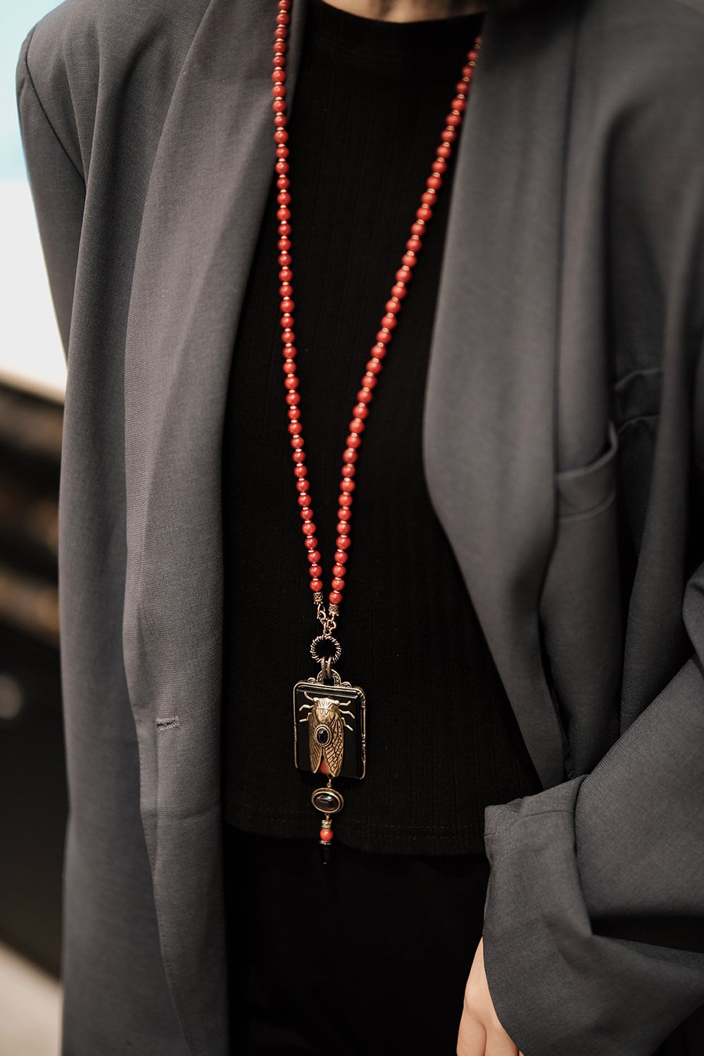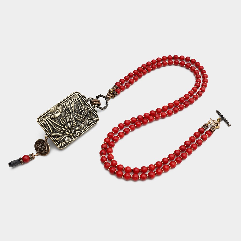 Be the first to review “Red Sea Bamboo Beaded Chain Natural Agate Golden Cicada Necklace”