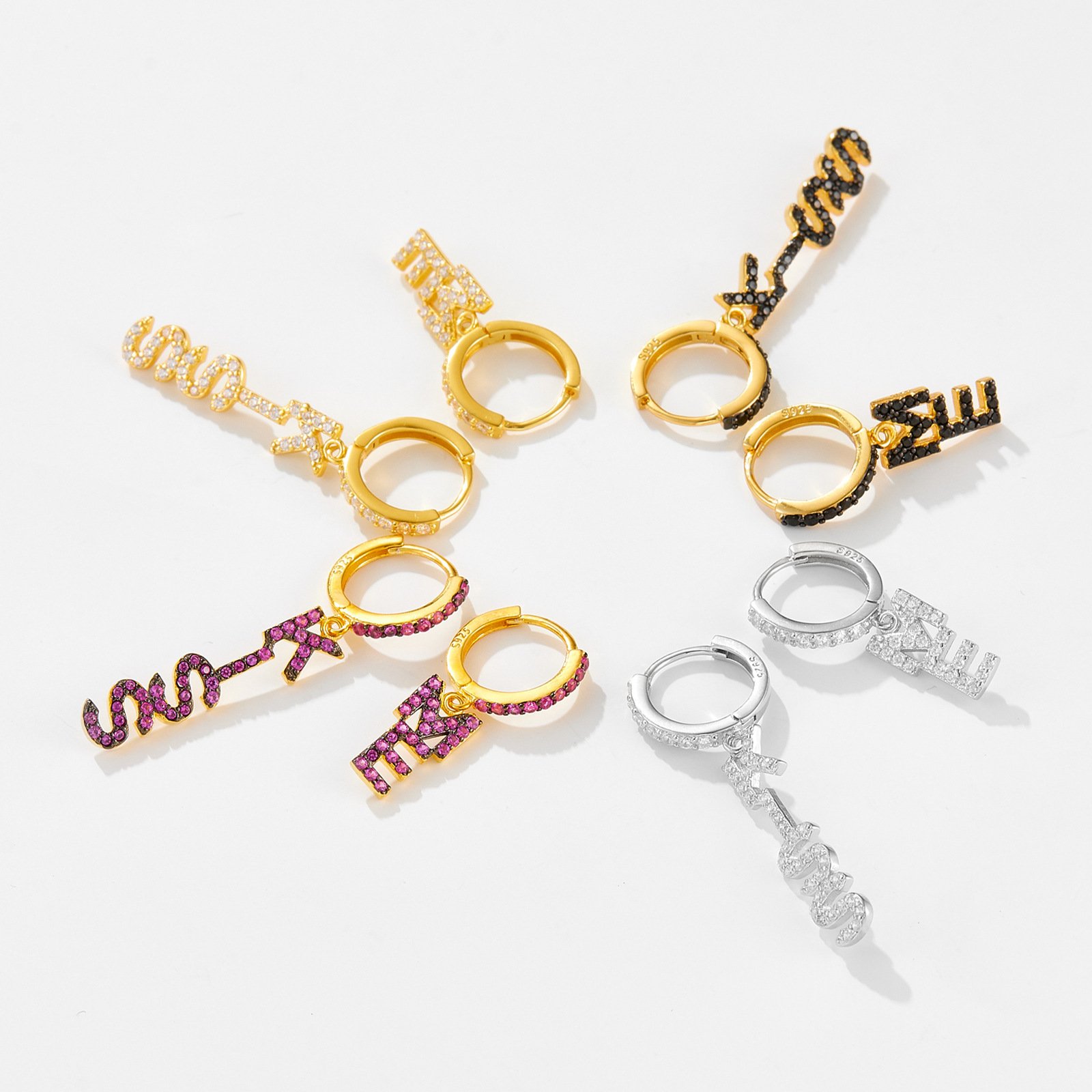 S925 Sterling Silver English Letters Ear Ring