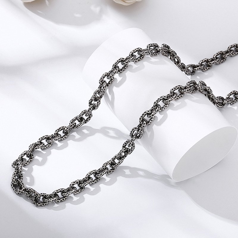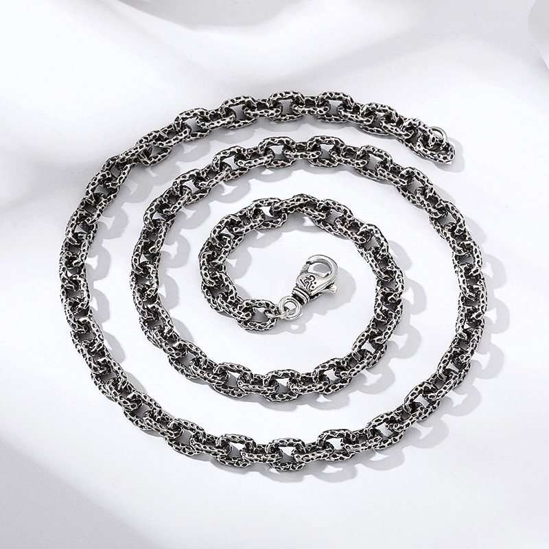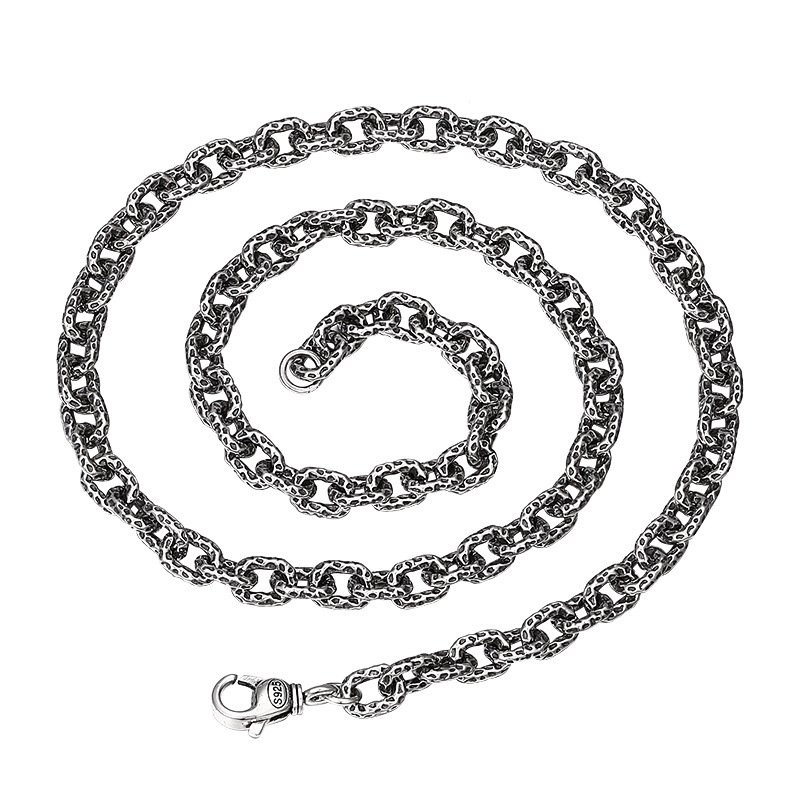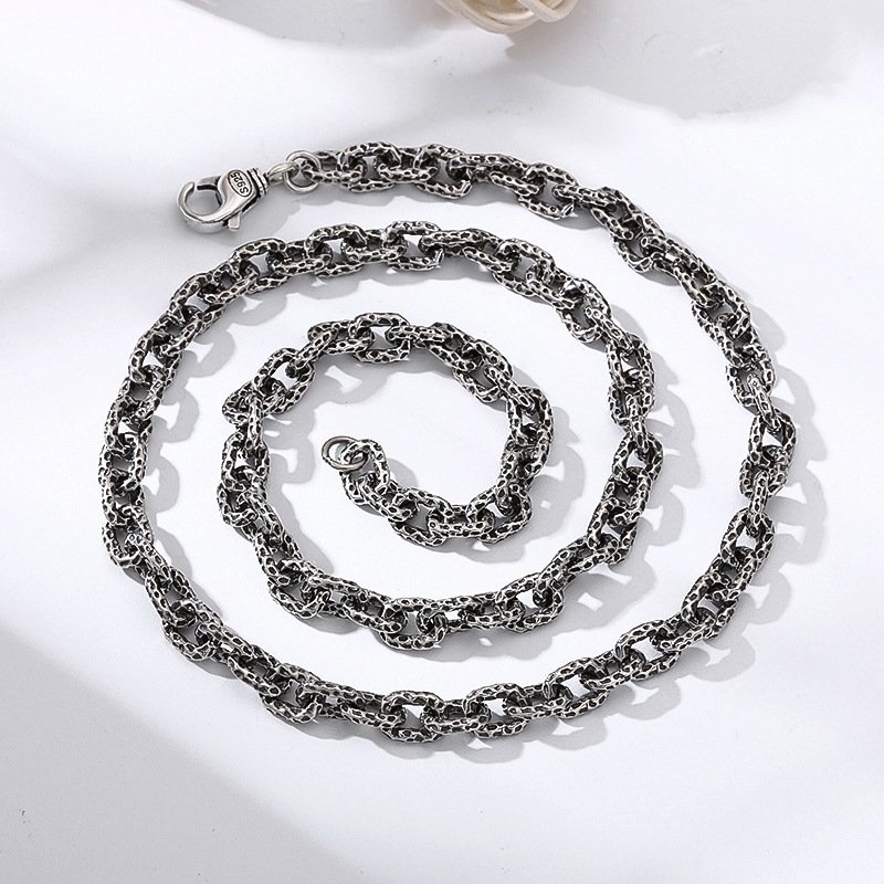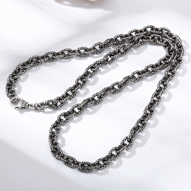 S925 Sterling Silver Meteorite Necklace Stone Pattern Thick Type Men