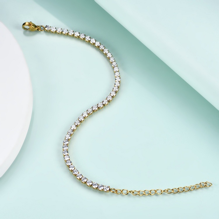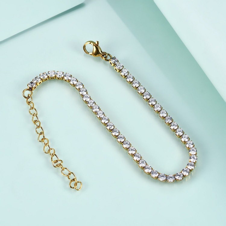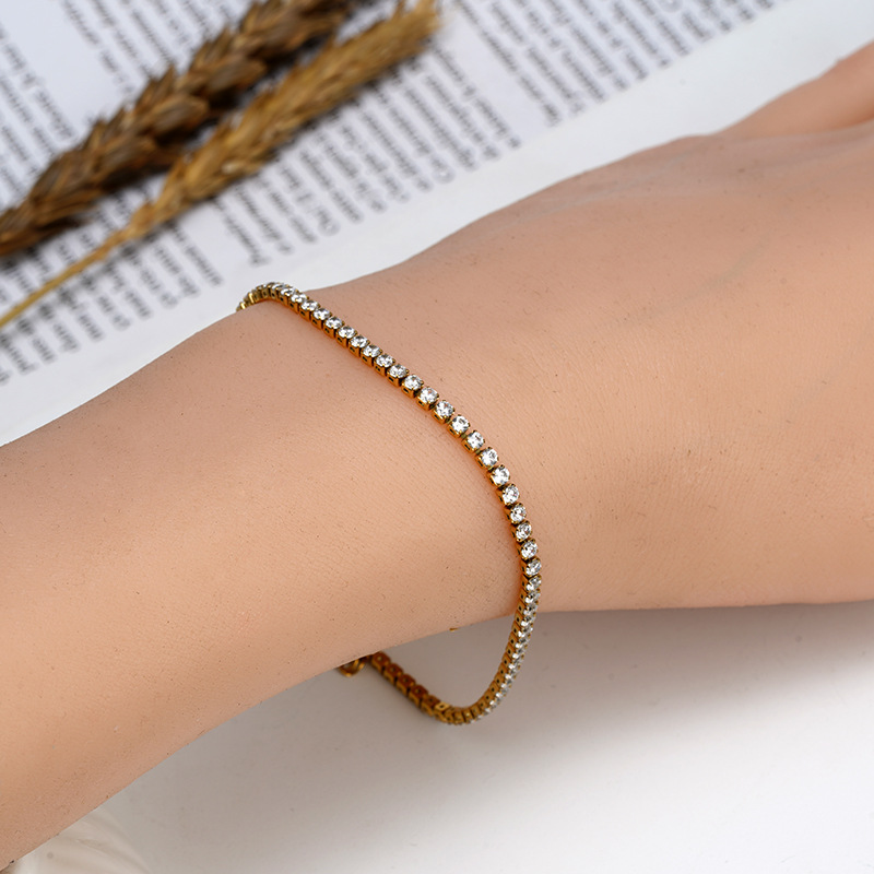 Stainless Steel Diamond Claw Chain K Gold Zircon Bracelet