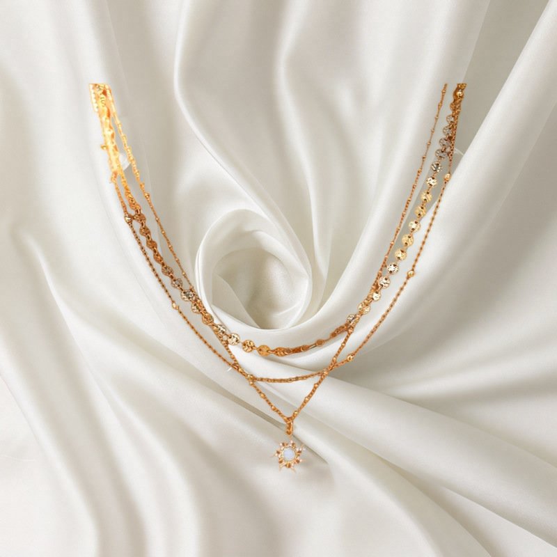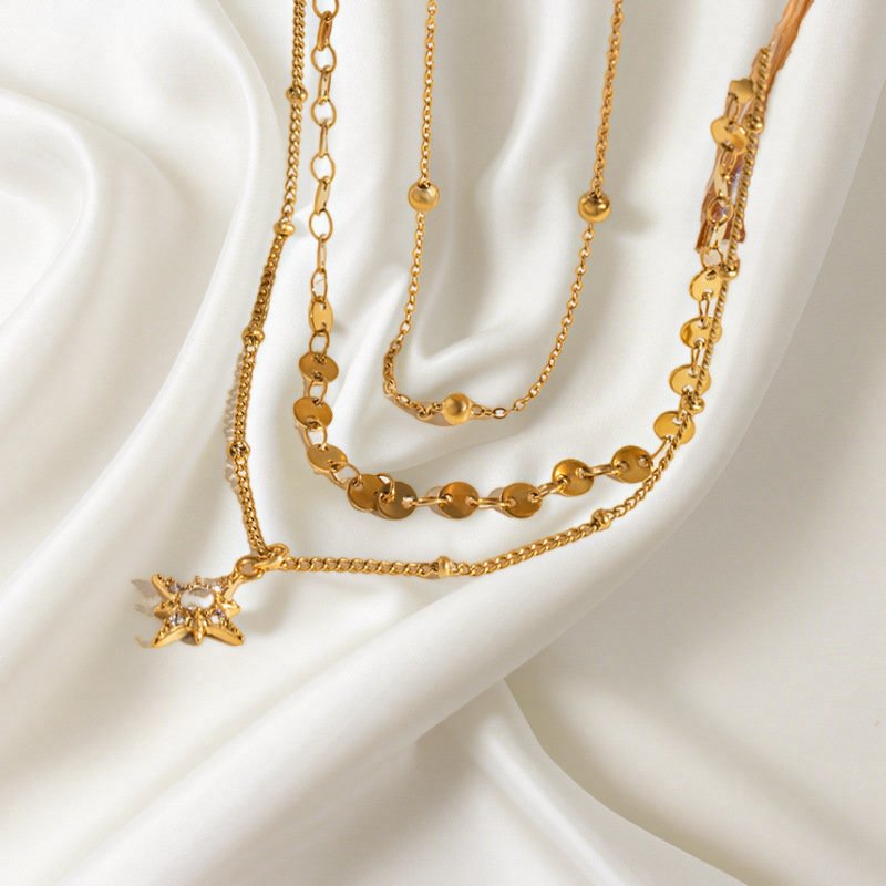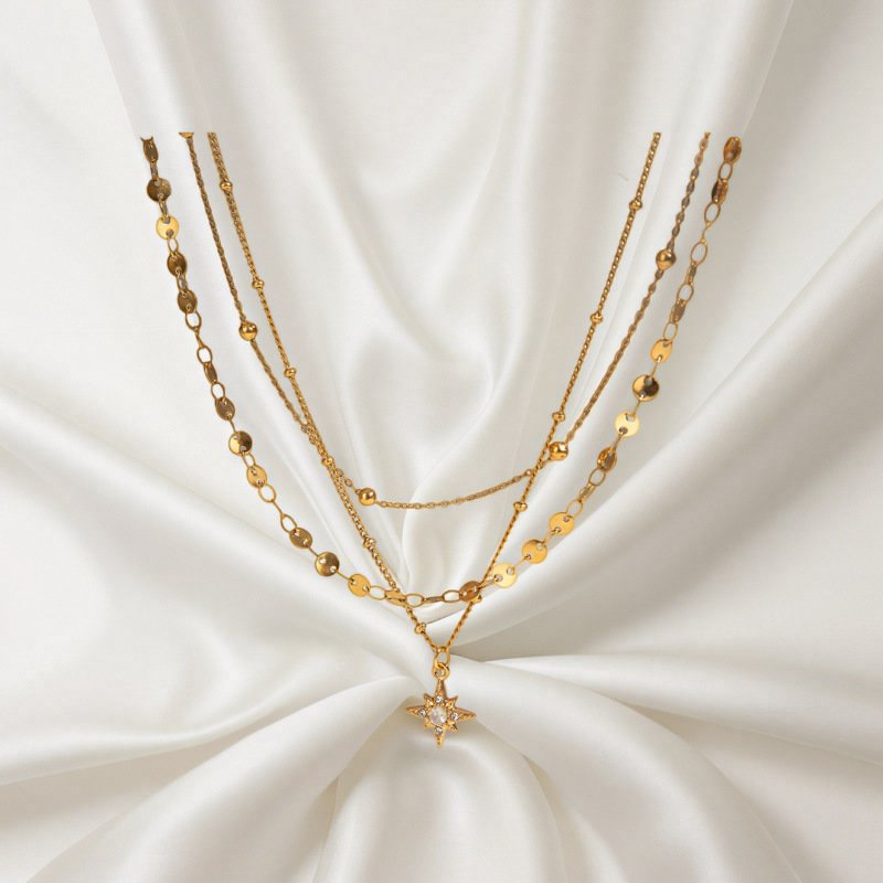 6 reviews for Stainless Steel Rhinestone Four Eight-pointed Stars Pendant Three-layer Necklace