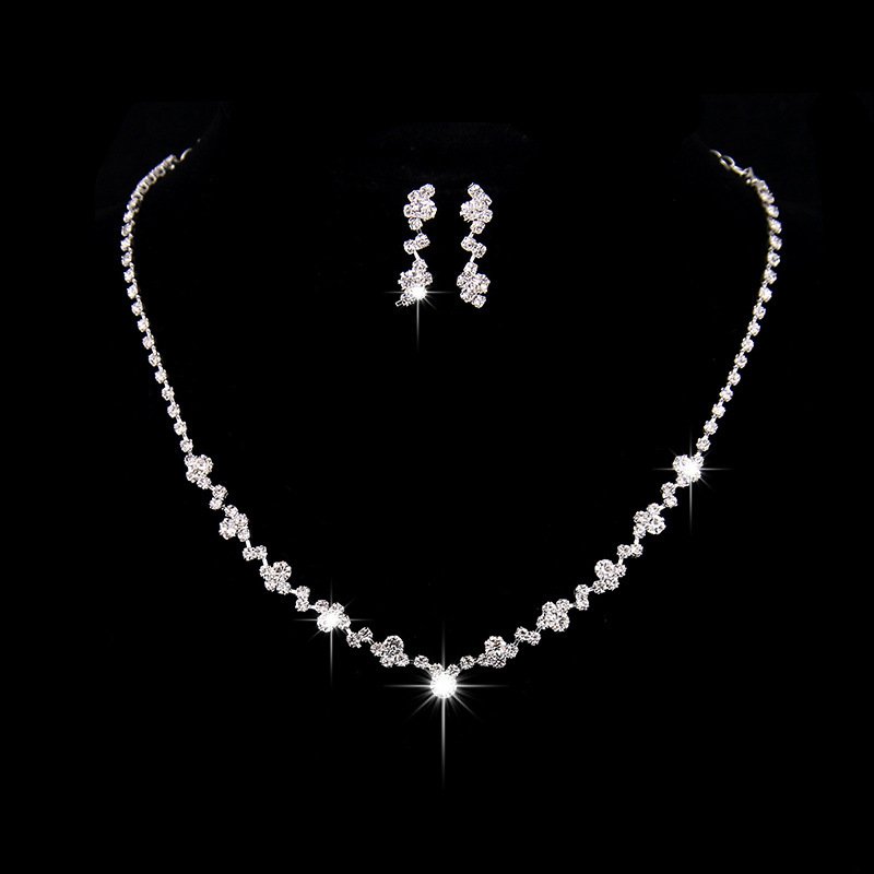 The supply of Bridal Necklace Earrings two sets of simple Rhinestone Suit Wedding Dress Accessories 425