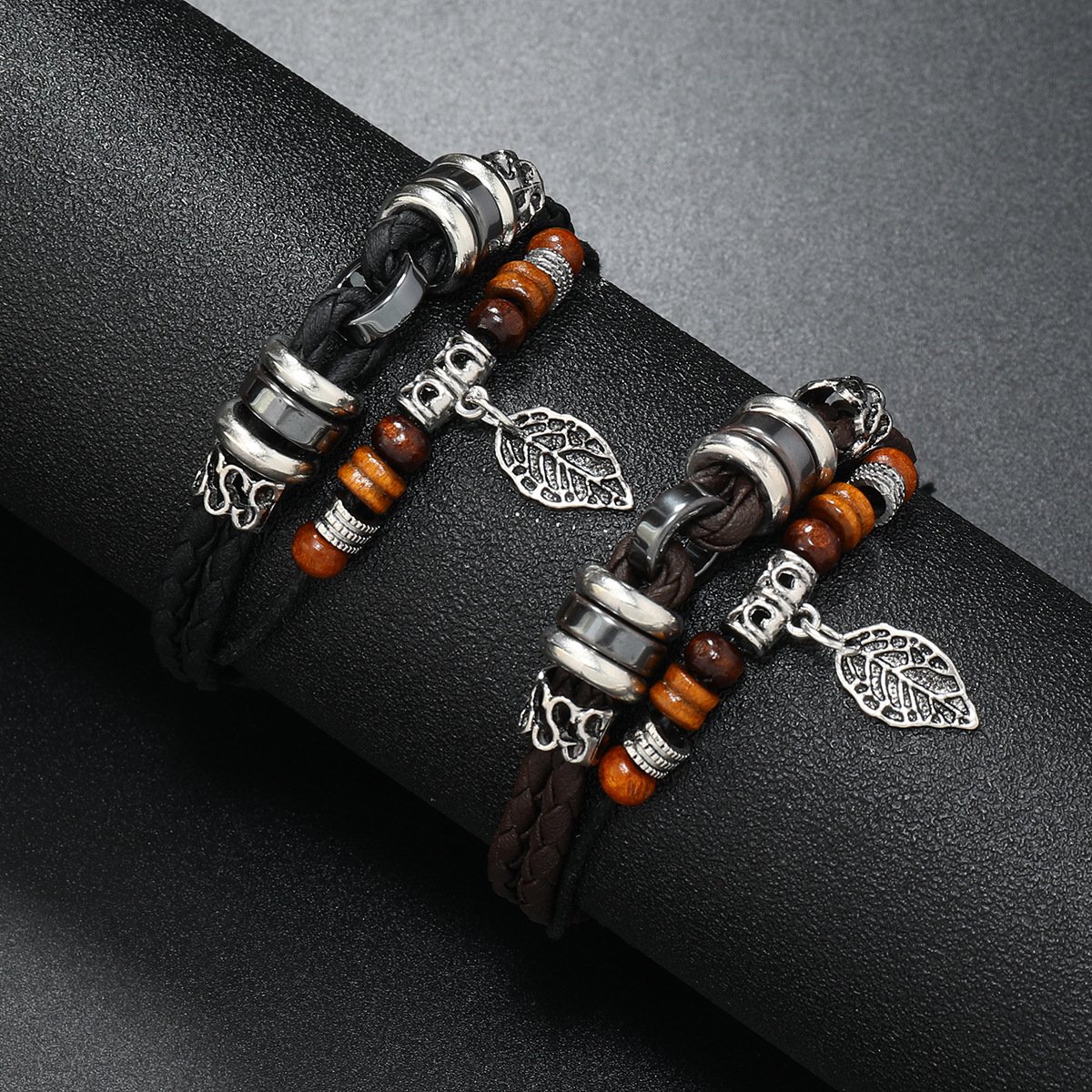 Be the first to review “Woven Leaf Pendant Men’s Leather Bracelet Simple”